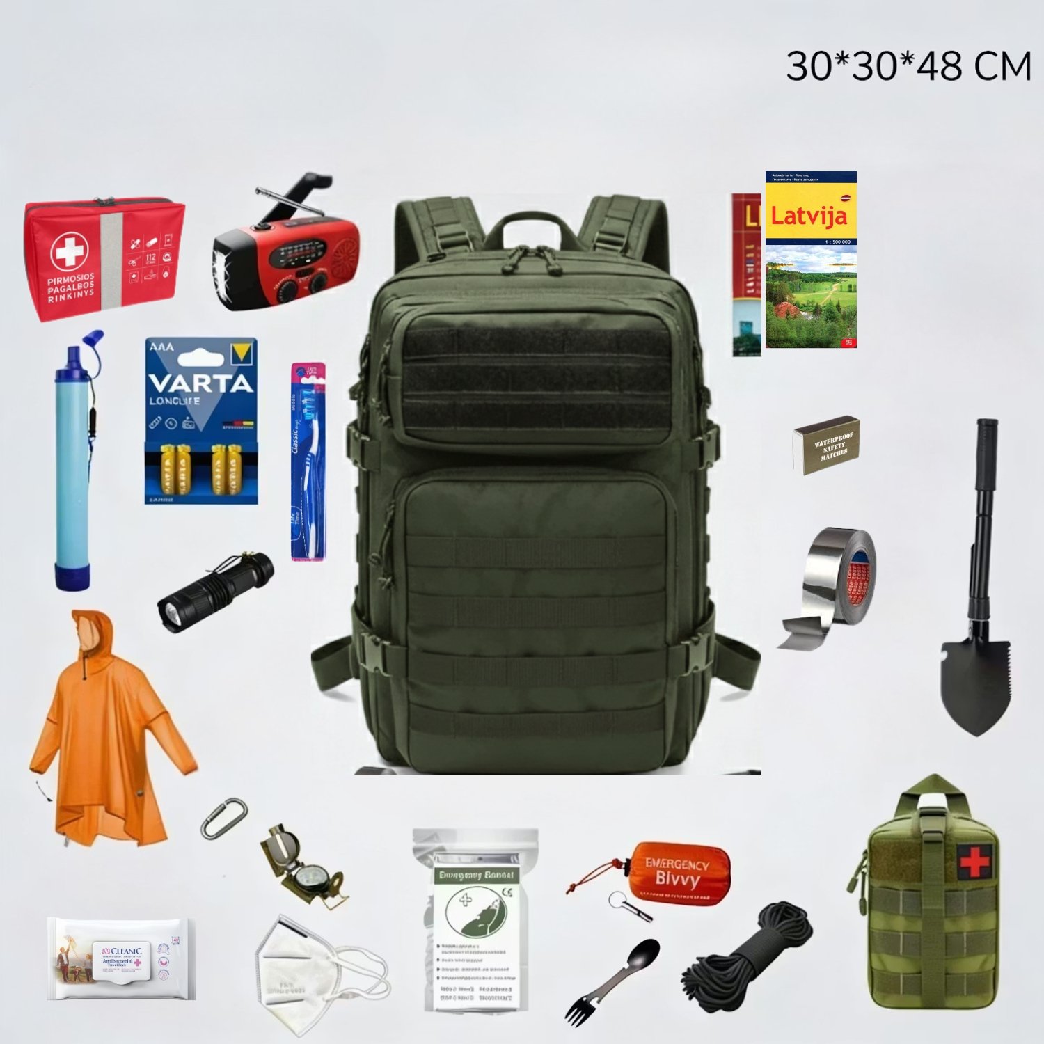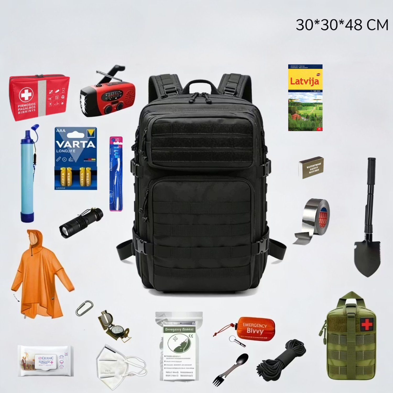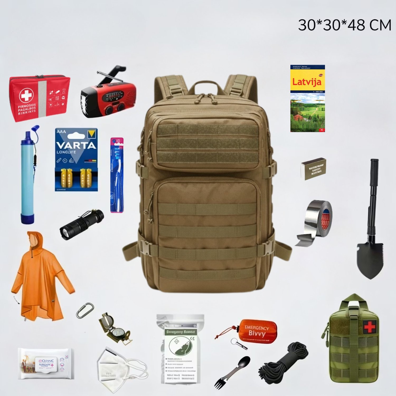 Ietilpīga, izturīga un universāla – ideāli piemērota gan 72 stundu evakuācijai, gan pārgājieniem vai kempingiem.